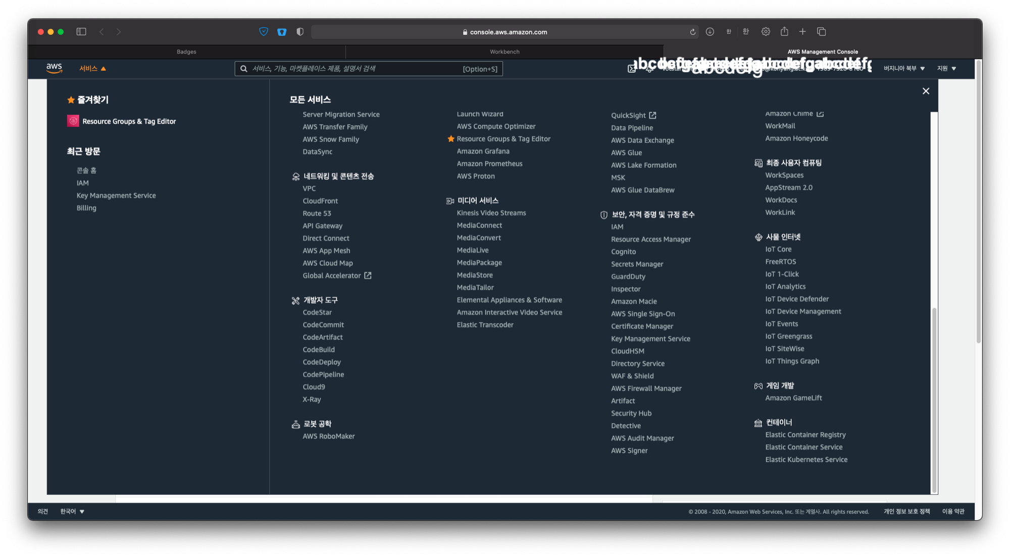 콘솔에 접속해 좌측 상단 서비스를 클릭해보면 AWS에서 제공하는 매우 다양한 서비스들이 보인다. 여기서 IAM부분에 접속해 MFA항목을 설정해주면 된다.
