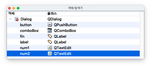 일단 기본적으로 Text Browser, Combo Box, Label을 사용해 모양을 잡은 모습이다.