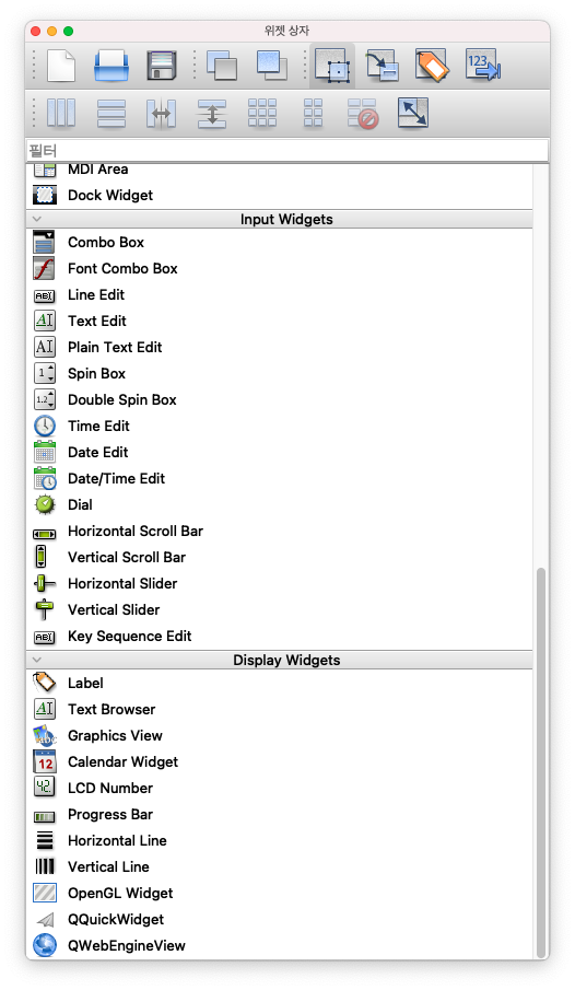 이제 필요한 요소들이 아래 보이는 위젯 상자에서 Drag and Drop 하면 된다.