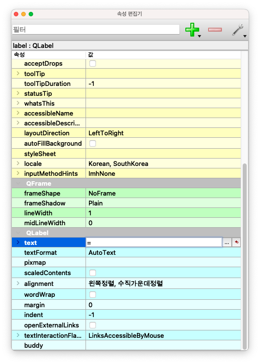 첫 번째 TextLabel은 "="을 써주고 싶으니 속성 편집기에서 바꾸어 준다.